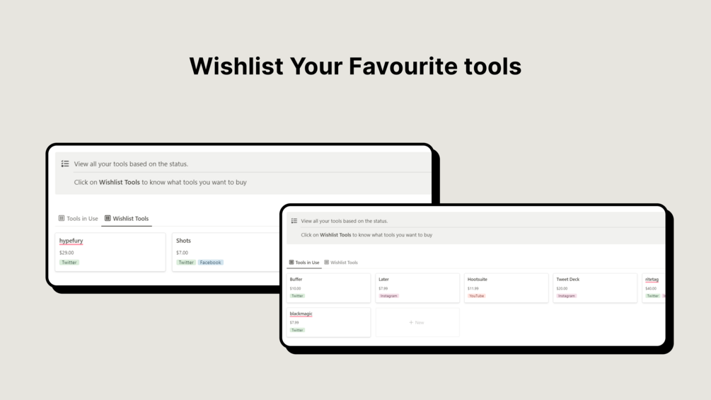 3) View all the tools you’re using currently & wishlist ones you want to purchase.